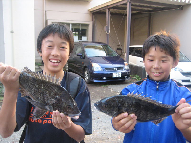| 皆、釣りは初めてで、釣り方、道具の扱い、餌のつけ方も解らない状態なのですが何とか釣りを開始する事が出来ました。 |