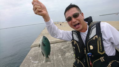 まずはメンバーの大坂部さんと高田くん、岡里くんとメジナ狙い。