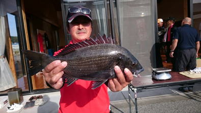 先週一緒に釣りをした宇佐美くんが大津港の堤防で40アップの黒鯛と海津を釣り上げ見事に優勝!