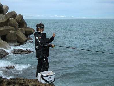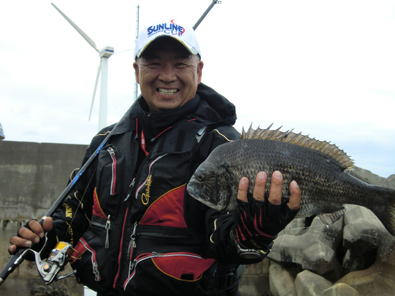 5月3日、埼玉の北村さんと群馬の角田清隆さんが、「美味い魚を釣らせろー」と長野支部の不健康な面々と合流。低気圧が迫って来てはいるけど、能生の八つ割れなら何とか釣りができそう。エイハブ船長こと、熊谷さんも海賊船を新調して、この日が初出船。お祝い用の赤い鯛は無理でも、黒い方は間違いないだろうし、大きいヤツも期待できる磯。斎藤支部長、エイハブ船長、北村さん、角田さん4名は、実績、型ともに抜群の通称ヒヨコへ。ワタクシとエロダンディー山岸氏は越山丸前の磯。サラシもほど良くコンディション良好。コマセをサラシに乗せハエ根際に運び、ハエ根際で仕掛けを落ち着かせる。ウキ下は2ヒロ半。フグに取られていたエサが残るようになったので、さらに半ヒロ下げたウキが、スルスルっと勢いよく入る。ハエ根をかわして海面に浮かした黒鯛はまずまずの良型。タマを取ろうと振り向くと、タマが足下に無い。一度フリーで糸を出し、玉を手に取り振り向くと・・、あれ?左足の下がスカスカ・・? 体はすでに転倒寸前!おもいっ切り左足を伸ばし一段下に突いたとたん、左足太ももから電撃が???。「痛いよ、痛いよ〜」子供みたいな声を発しながら取り込んだ黒鯛は47p。「肉離れ起こしたぁ〜、痛いよ〜」と情けない声を出しているワタクシに、山岸氏はチョコレートを食べながら、「あ〜あ、これは地着きの黒鯛だ。乗っ込みのじゃねーよ」といたわりの言葉は無い。「今日は気分が良いし、大漁間違いないね」とニコニコ。痛い足を引きずりながらサラシの先を狙うと、今度は乗っ込みらしい銀ピカの40p。足は痛いが釣れると嬉しくて笑顔になるこの矛盾。(バカだねー)。ヒヨコも角田さんが大型を釣ったようで、北村カメラマンが写真を撮っている模様。足が痛くて、そろそろ休憩しようかなぁーと思うとヒット。山岸氏もデカイヤツを掛けたがハリ外れでのバラシ。いつ急変するか判らない海況と、この好時合い。5枚釣り上げた頃から痛さMAX。ヒヨコも快調に竿が曲がっているから、「帰ろうよー」と言い出しにくいし。(早くドシャ降りの雨降れー、風吹けー、うねりカモーン。)磯の上にヘタリ込みながらも、ワタクシの念力は抜群で、午後までは大丈夫!と皆が信じていた西風が吹き出した。ウネリも少し上がり出し、低い磯では波が洗っている。熊谷さんから電話が入り、「チョッとヤバそうですね、上がりますか?」とのお誘い。ワタクシとしては願ったり叶ったり。車に戻ると波はアッという間に低くなり、穏やかになった磯が見える。(俺の念力すげぇー)、ラーメン屋で昼飯を食べながら話しをしていると、薬を口にする北村さん。どうも膝痛が激しく、痛み止めの座薬まで入れて釣りに来ていると言う。(何もそこまでして黒鯛釣らなくても・・。)皆さん、やはり釣りは健康体の時が一番楽しいですよ。健康管理と釣りの前には準備体操忘れずに。