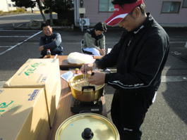 「皆さんどうぞ」斎藤支部長の言葉にも誰も手を付けず、「毒見役」は勿論トップ賞の山田君。「どうだ?」「・・・」「大丈夫!」この言葉を皮切りに皆口をつけるが、これがなかなか美味く、体も温まり、皆お代りまでしてしっかり頂いちゃいました。空腹は最高の調味料と言いますからね。これにてファイナルカップへの我ら「虎の穴」からの刺客が決定したぜ。第1回予選でトップ賞の「無法者・吉本」に「バカ亭主・斎藤」2回予選トップ賞の「ファンタジスタ・山田」に「エロダンディ・山岸」「竿破壊王・忠地」まだまだ我ら「虎の穴」には秘密兵器?が居るから楽しみだぜ。フッ、フッ、フッ。